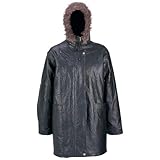 Hand-Sewn Pebble Grain Genuine Leather Ladies' Coat with Faux Fur Hood (Pick a Size=Large)